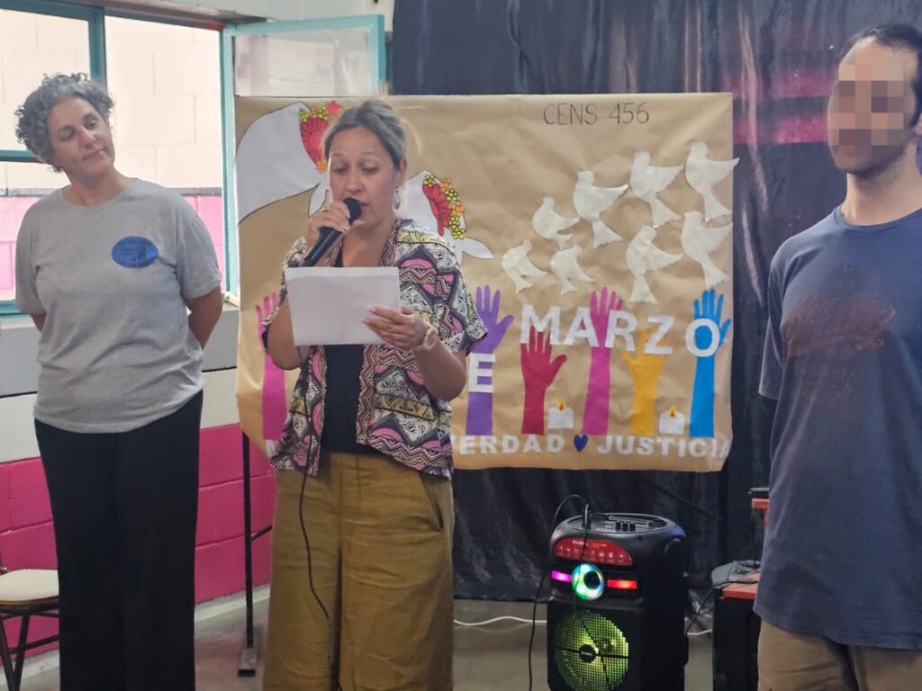 Por la tarde, se realizó el acto correspondiente en el CENS N ° 456, organizado por su directora Gabriela Marrare, acompañada de su equipo de profesores.