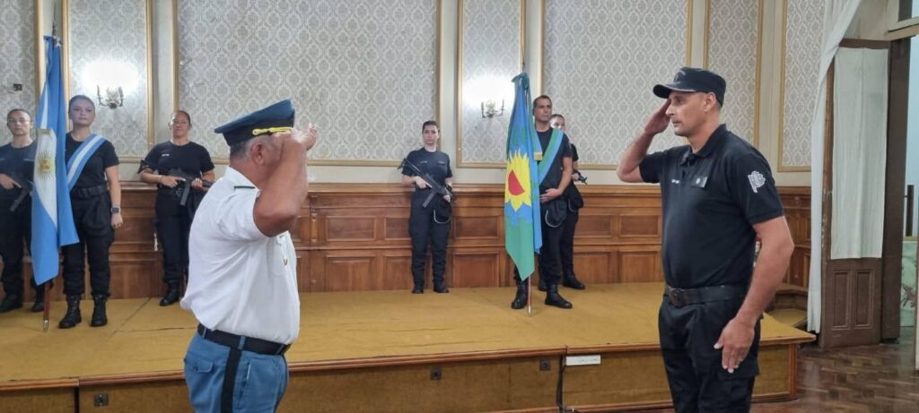 Azul, 18/03/26.- En el marco de la ceremonia de entrega de jerarquĆas, llevada a cabo el dĆa de ayer en el Salón Cultural de la ciudad de Azul āespacio emblemĆ”tico y de gran valor histórico ubicado en el centro de la localidadā, se formalizó la puesta en funciones del nuevo Director de la Unidad 7, Sergio Miguel Braun.