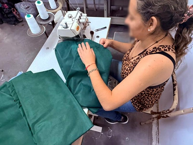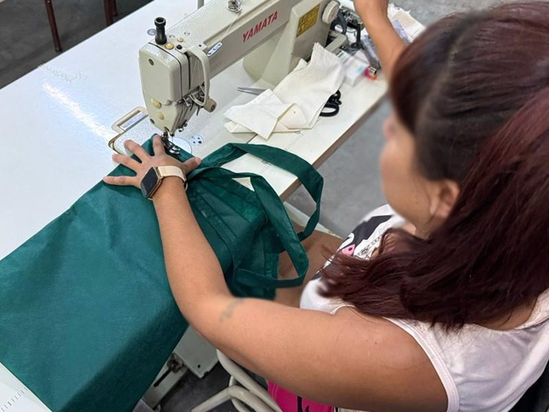 Azul, 27/02/2026.- En una iniciativa que busca el objetivo de cuidar el medio ambiente, en la cárcel de mujeres de la localidad bonaerense de Azul confeccionaron 200 bolsas de tela para la comunidad, a fin de reemplazar a las de plástico.