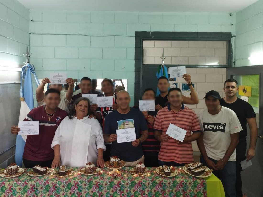 San Martín, 19/12/25.- Como parte de las capacitaciones en oficios que se brindan en las cárceles bonaerenses, en el sector de Régimen Abierto de la Unidad 48 San Martín se realizó el acto de entrega de certificados correspondientes al curso de Pastelería Avanzada que contó con la participación de 20 personas privadas de su libertad.