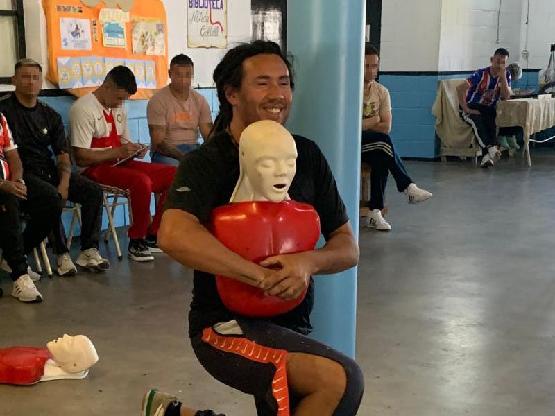 Campana, 14/11/25.- Personas Privadas de la Libertad que cursan sus estudios en diferentes niveles educativos de la Unidad 41 de Campana participaron de una jornada de capacitación en técnicas de RCP.