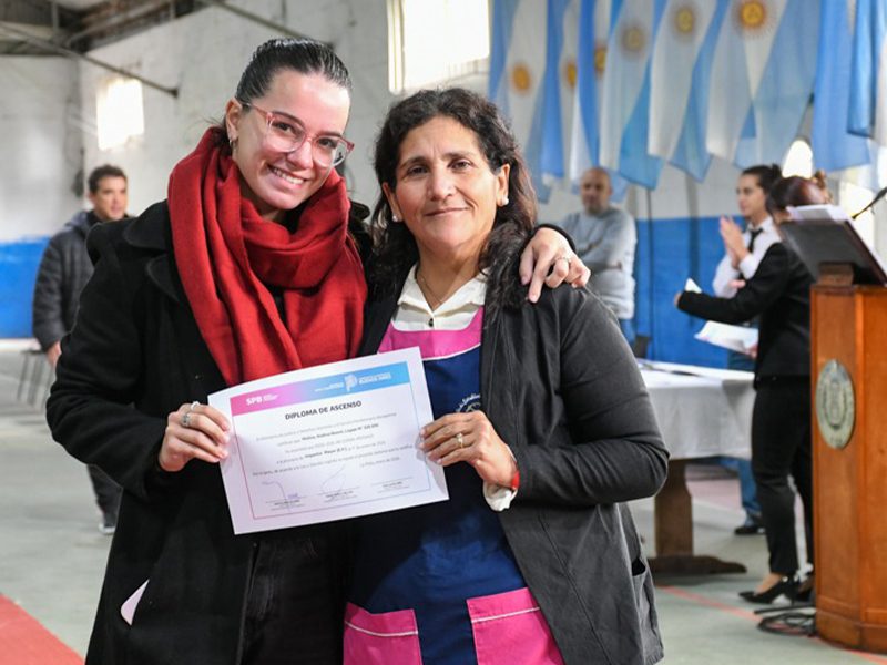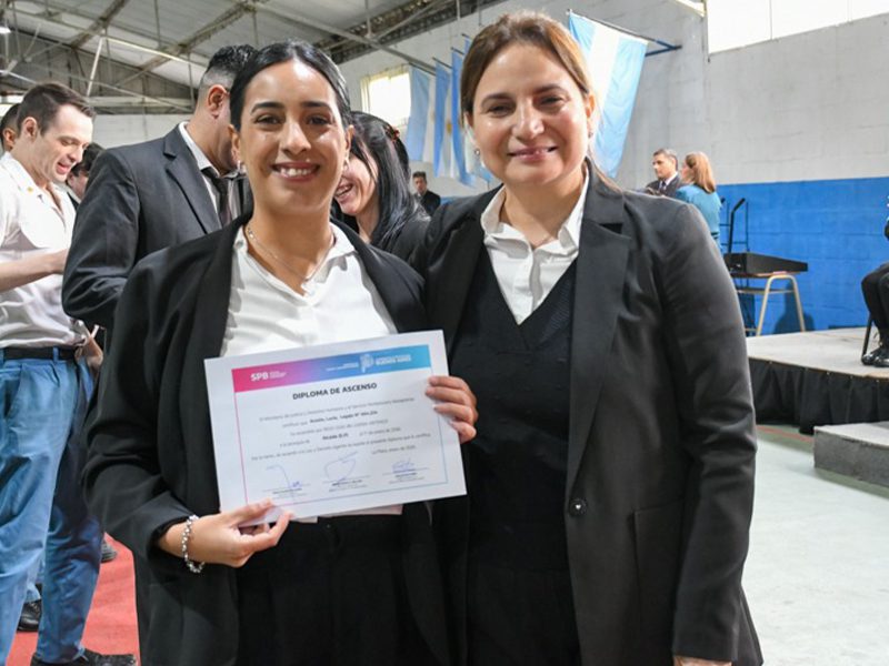 La Plata, 22/04/26.- Esta mañana se llevó a cabo el acto de entrega de diplomas y jerarquías al personal recientemente ascendido que cumple funciones en la Dirección General de Recursos Humanos del Servicio Penitenciario Bonaerense (SPB), en lo que constituye un significativo momento institucional.