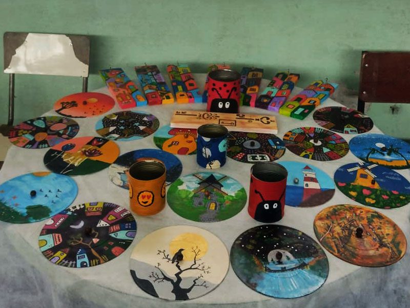 La muestra incluyó los productos realizados en los talleres de Pintura artística, de arte navideño, de cultura, de actividades virtuales, de flores, de alfombras y de encuadernación y packaging, entre otros.