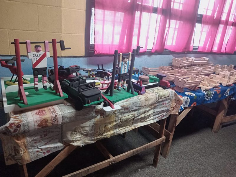 La iniciativa se desarrolló en el área de capacitación y oficios en el sector de carpintería del penal, donde las personas privadas de libertad trabajaron con palets para confeccionar autos, aviones, trenes, cunas, entre otras producciones.