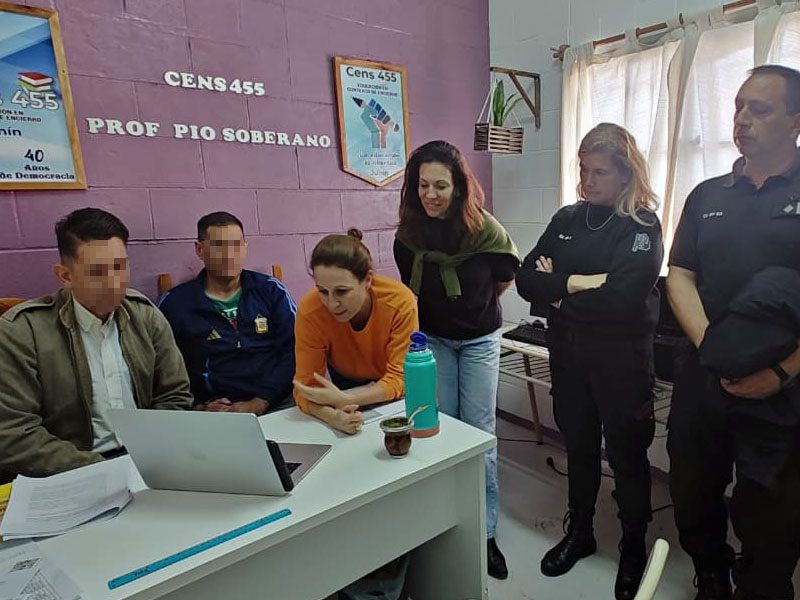 El equipo de trabajo estuvo acompañado por la docente a cargo, Rita Casella; la Directora del CENS N° 455, María Silvia Velasco; el jefe de Vigilancia y Tratamiento, Gerardo Rho; y la coordinadora de Cultura y Educación de la Alcaidía Penitenciaria Junín, Carolina Tonarelli.