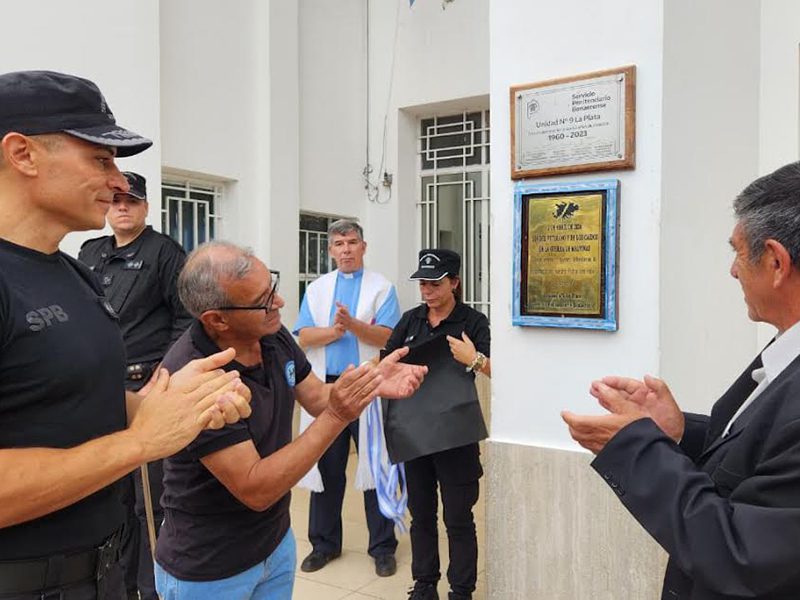 Seguidamente, los invitados de honor, junto al director de la Unidad, participaron del descubrimiento de una placa en homenaje a quienes defendieron la soberanía de nuestra Patria con valor y sacrificio. La misma fue colocada al frente del establecimiento carcelario, en la columna principal del establecimiento.