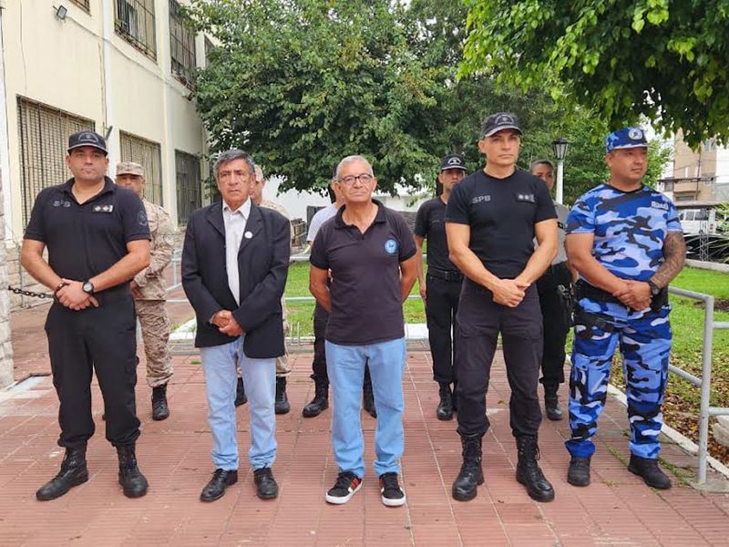 Se realizó el tradicional izamiento del pabellón nacional, con la presencia de las autoridades del establecimiento, el director Cristian Marchesi, el subdirector Renzo Ciancaglini y el jefe de la Guardia de Seguridad Exterior Leandro Godoy. Se encontraban, además, el director del Centro de Capacitación y Reentrenamiento Permanente del Personal Penitenciario, Juan Zaccheo, el director de cinotecnia, Juan Vidal y el jefe del Departamento Perros, Gustavo Alvarez.