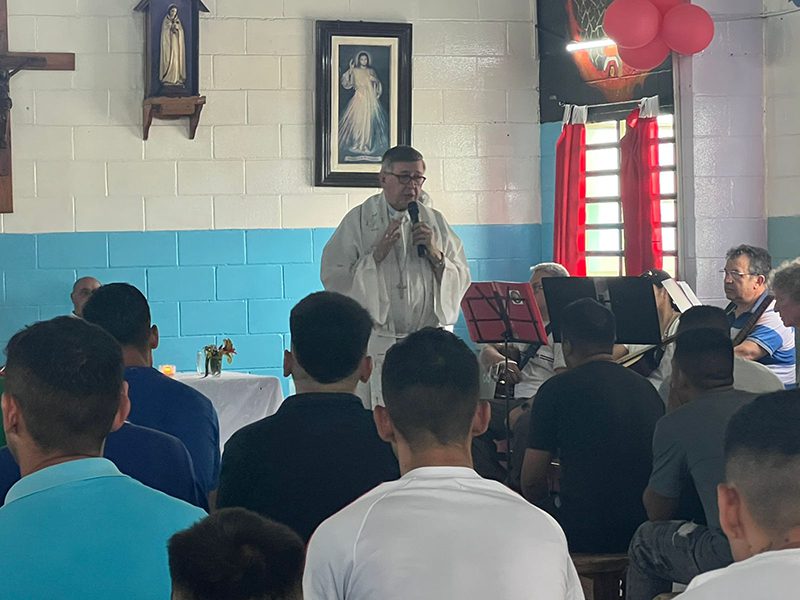 Ituzaingó, 24/12/25.- En el marco de las actividades religiosas desarrolladas en la Unidad 39, en vísperas de la Navidad, el obispo de Morón, Monseñor Alejandro Benna, brindó una misa en el mencionado establecimiento para los privados de la libertad allí alojados.