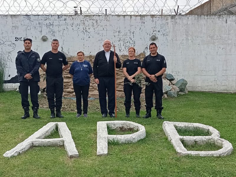 Batán, 14/04/26.- En el marco de la Semana de Pascuas, Monseñor. Ernesto Giobando, administrador apostólico de la Diócesis de Mar del Plata, visitó las Unidades 15, 50 y la Alcaidía Penitenciaria Batán (APB), invitado por los referentes de la Pastoral Carcelaria: Daniel Climente (Unidad 50), la hermana Helena Kuc (APB) y Sebastián Versellone (Unidad 15).