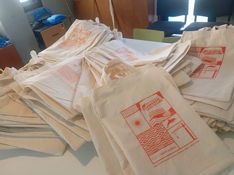 En la cárcel de Bahía Blanca fabricaron 800 bolsas reciclables para la Fiesta del Camarón y el Langostino