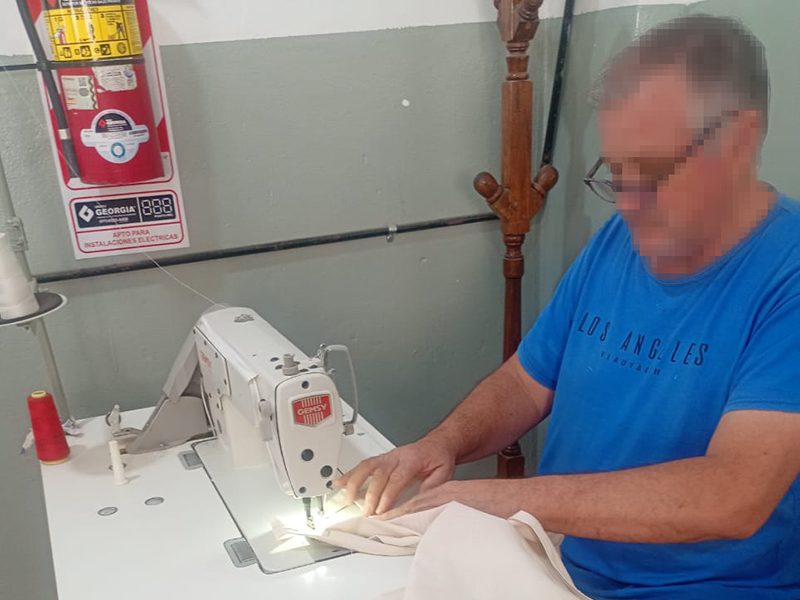 Bahía Blanca, 07/04/26.- Personas privadas de libertad de la cárcel bonaerense de Bahía Blanca elaboraron 800 bolsas de tela que fueron utilizadas en la fiesta del camarón y el Langostino, desarrollada entre en 2 y el 5 de abril pasados, en una iniciativa solidaria.