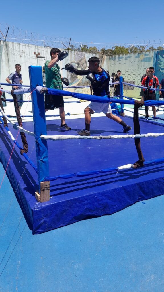 Magdalena, 26/11/2025.- En el día de la fecha, se llevó a cabo una clínica de Boxeo dentro de la Unidad 36 donde participaron 40 internos de varios pabellones, contando con la presencia del ex boxeador Alberto Ezequiel Melián, el entrenador de boxeo del club Excursionistas, Santiago Cantisano,y un grupo de colaboradores pertenecientes a dicha Institución.