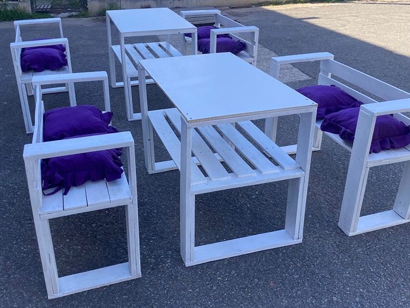 Los bancos y mesas fueron confeccionados y pintados por un grupo reducido de jóvenes adultos, quienes participaron en todas las etapas del proceso, desde el diseño hasta la finalización de las piezas, fortaleciendo habilidades laborales, el compromiso social y el sentido de pertenencia comunitaria.