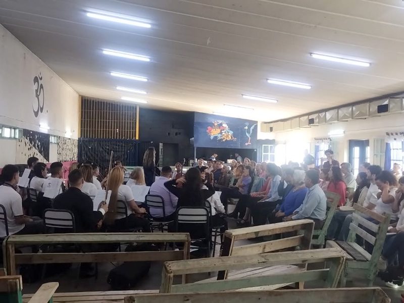 San Martín, 07/11/25.- Días atrás, en la Unidad 47 San Martín, se desarrolló un evento cultural con la visita del Coro del Faro que compartió un encuentro musical junto a las personas privadas de libertad que conforman la Orquesta de Cámara en la cárcel.