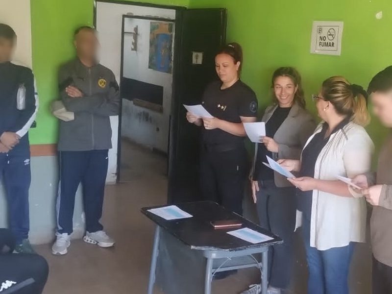 La jornada contó con la presencia del equipo del CAJUS, integrado por la operadora en Psicología Social, Verónica San Martín, y la licenciada en Psicología, Alejandra De Lazzer, junto a la subjefa de Tratamiento de la Unidad, Vanesa Bustamante.