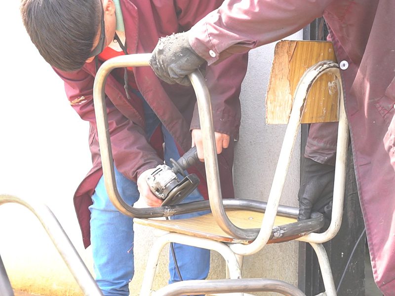 En dos naves conectadas por un patio central, los internos llevan a cabo la producción del mobiliario con el aporte del Ministerio de Justicia y Derechos Humanos y la Fundación del Banco Provincia, desde donde se proveyó de maquinaria especializada, como una curvadora hidráulica de caños de hierro, soldadoras MIG, pantógrafos para corte de melamina y una cabina de pintura para hierro, todas maquinarias con estándares industriales y capacidad de producción en escala