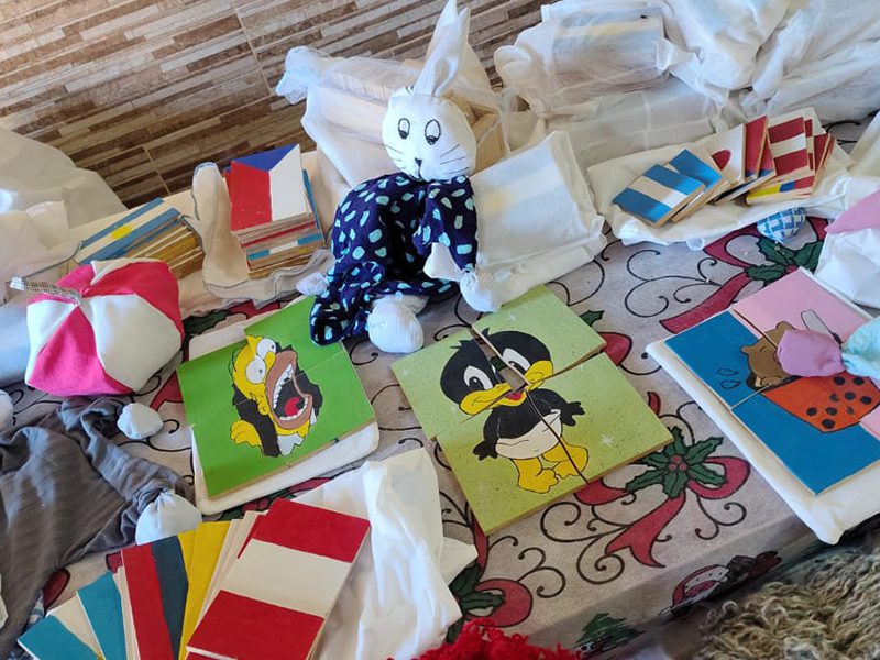 Las internas confeccionaron juegos didácticos, entre ellos tatetí, memotest y dominó, 10 muñecas tipo pepona, 15 muñecos de apego y 10 pelotas de tela, todos elaborados íntegramente en el marco de los espacios de formación laboral que promueven el aprendizaje de oficios, la responsabilidad y el compromiso con la comunidad.