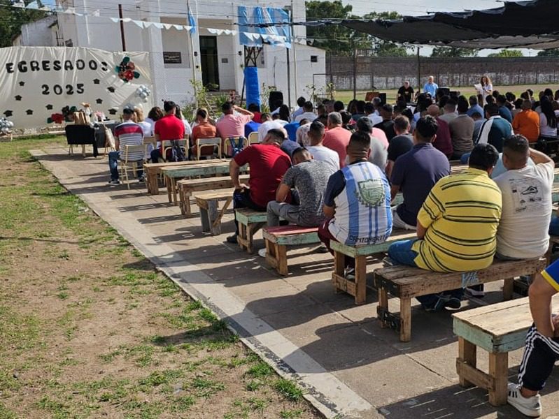 Sierra Chica, 24/05/2025.- La Unidad 2 Sierra Chica fue el escenario del acto de fin de curso y egreso de los estudiantes del Centro Educativo de Nivel Secundario (CENS) N° 455, donde 60 personas privadas de la libertad culminaron el Bachillerato con Orientación en Ciencias Sociales.