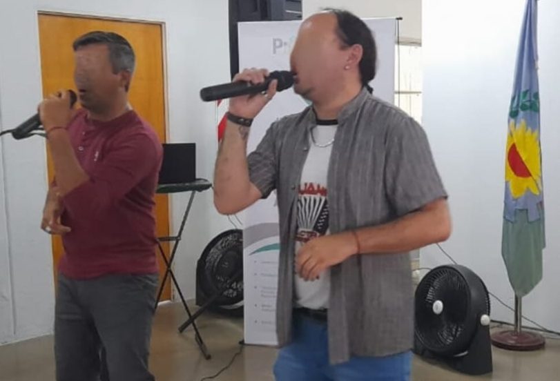 Como cierre, la tallerista de los pabellones literarios Vanesa Durso, presentó a algunos de los representantes de los talleres: Jeremías interpretó raps de su autoría, Jorge compartió sus poesías, Claudio junto a un compañero en la guitarra interpretó dos conocidos temas musicales, y tres de los alumnos de teatro realizaron un divertido fragmento de la Película «Esperando la Carroza».