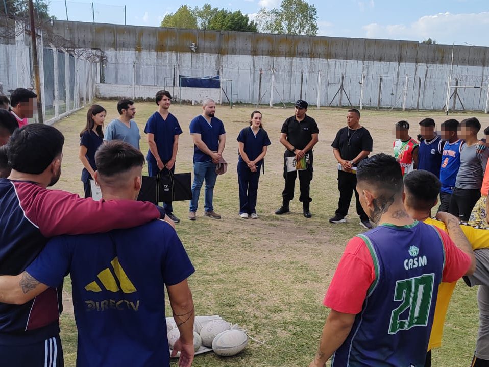 Para llevar adelante la actividad se presentó en el establecimiento carcelario un grupo conformado por docente y alumnos de la Universidad Católica de La Plata (UCALP) con el fin de realizar diferentes mediciones en lo que respecta a la nutrición, kinesiología, capacidad de salto, de los internos que practican rugby.