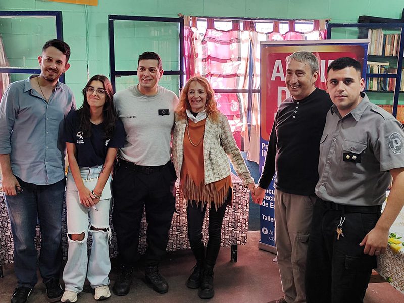Acompañaron a Mercedes los talleristas Maximiliano Vivas y Guillermo Carbia junto a la coordinación cultural y educativa del establecimiento carcelario.