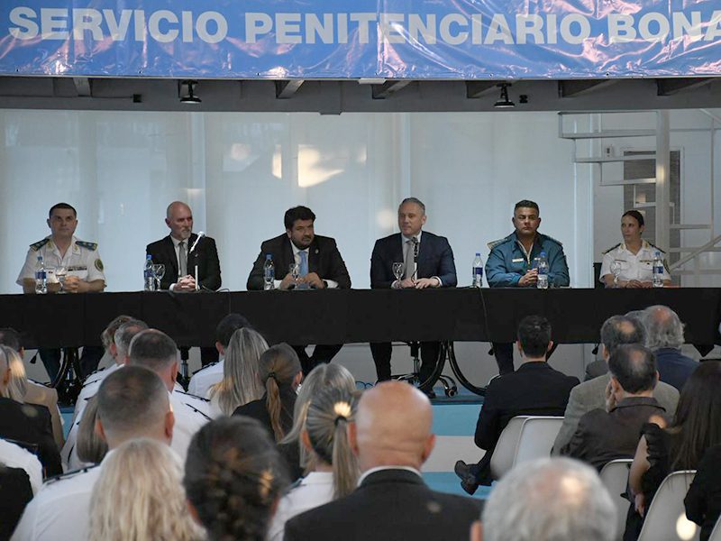 Estuvieron también en el acto la directora del Instituto Superior de Formación Técnica N° 6001 “Baltasar A. Iramain”, María José Anaya; el director del Centro de Capacitación y Reentrenamiento Permanente del Personal Penitenciario, Juan Zaccheo; el presidente del Círculo de Oficiales del SPB, Jesús Heneyni; el director general de Coordinación, Raúl Gómez; el director general de Seguridad, Cristian Martínez; la directora general de Recursos Humanos, Rosa Miño; y la directora general de Asistencia y Tratamiento, Alejandra Romano, entre otras personas.