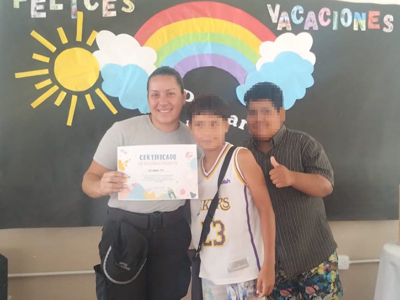 La subdirectora de Inclusión de la Unidad 17, Tamara Bais participó del acto en representación de la Dirección de la Unidad y de la sección Talleres, a cargo del oficial Carlos Vivas. Bais fue la encargada de recibir el diploma que fue entregado por los alumnos del Centro Complementario Educativo.