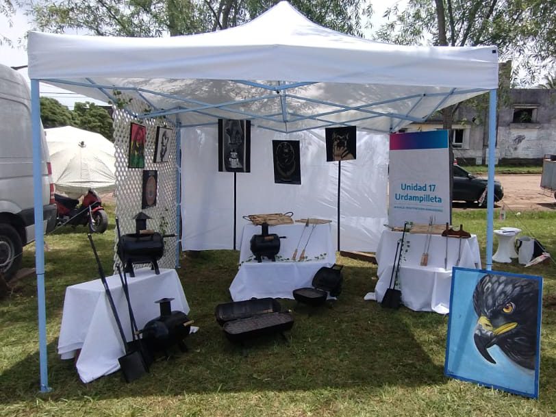 Urdampilleta, 16/12/25.- En el marco del 5º Encuentro Rodantero de Urdampilleta, la Unidad 17 participó con un stand que expuso los trabajos realizados por los privados de la libertad en la sección Talleres, especialmente los que forman parte del taller de herrería y carpintería.