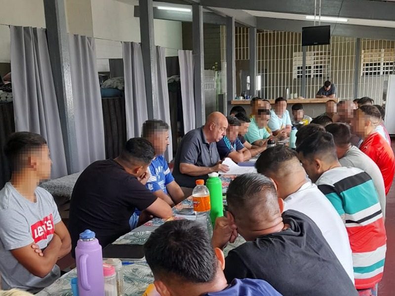 Magdalena, 28/11/2025.- En el día de ayer dentro del pabellón literario 18 en la Unidad 28 de Magdalena, Marcelo Pernigotti visitó el complejo de dicha Unidad.