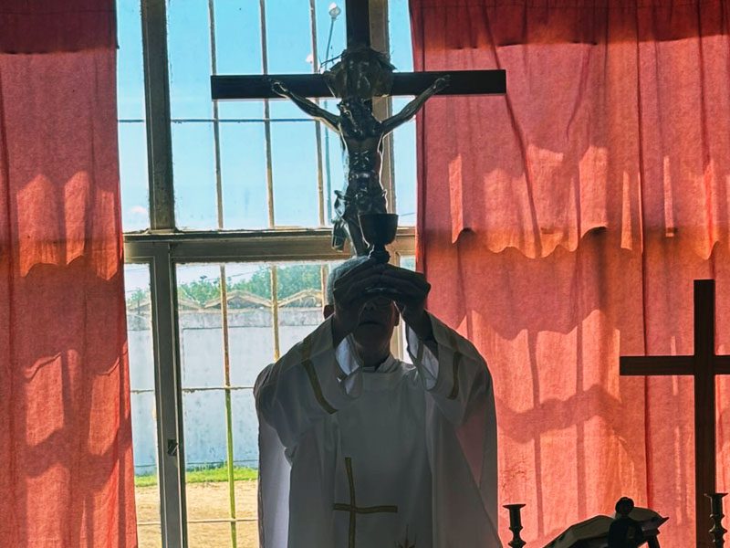 Junín, 23/12/25.- Este martes se llevó a cabo una celebración religiosa en la Iglesia Católica de la Unidad 16 de Junín, que fue oficiada por el Capellán Presbítero Gustavo González, como parte de las actividades en las vísperas de la Navidad.