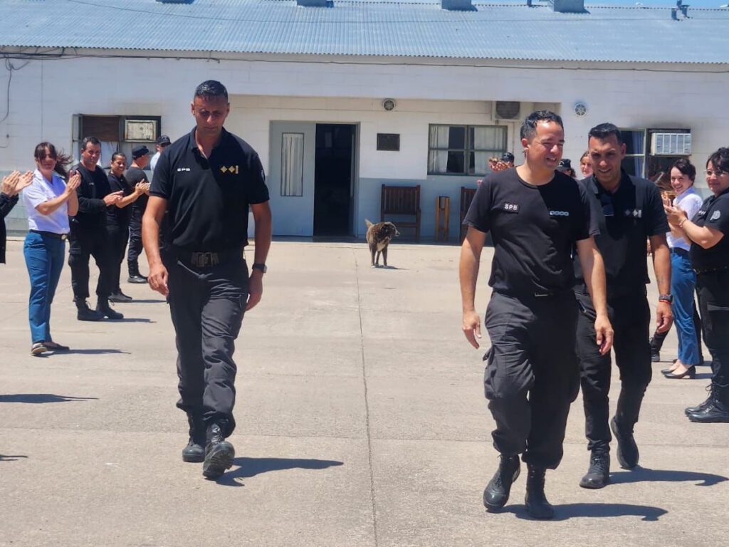 Los compañeros despidieron con aplausos al Suboficial Mayor que también recibió cálidas palabras por parte de los subdirectores de Seguridad y Asistencia y Tratamiento, Sergio Braun y Facundo Martínez Cisneros, quienes instaron al reciente retirado a continuar con sus proyectos personales con el mismo ímpetu con el que se ha desempeñado en la Unidad 38.