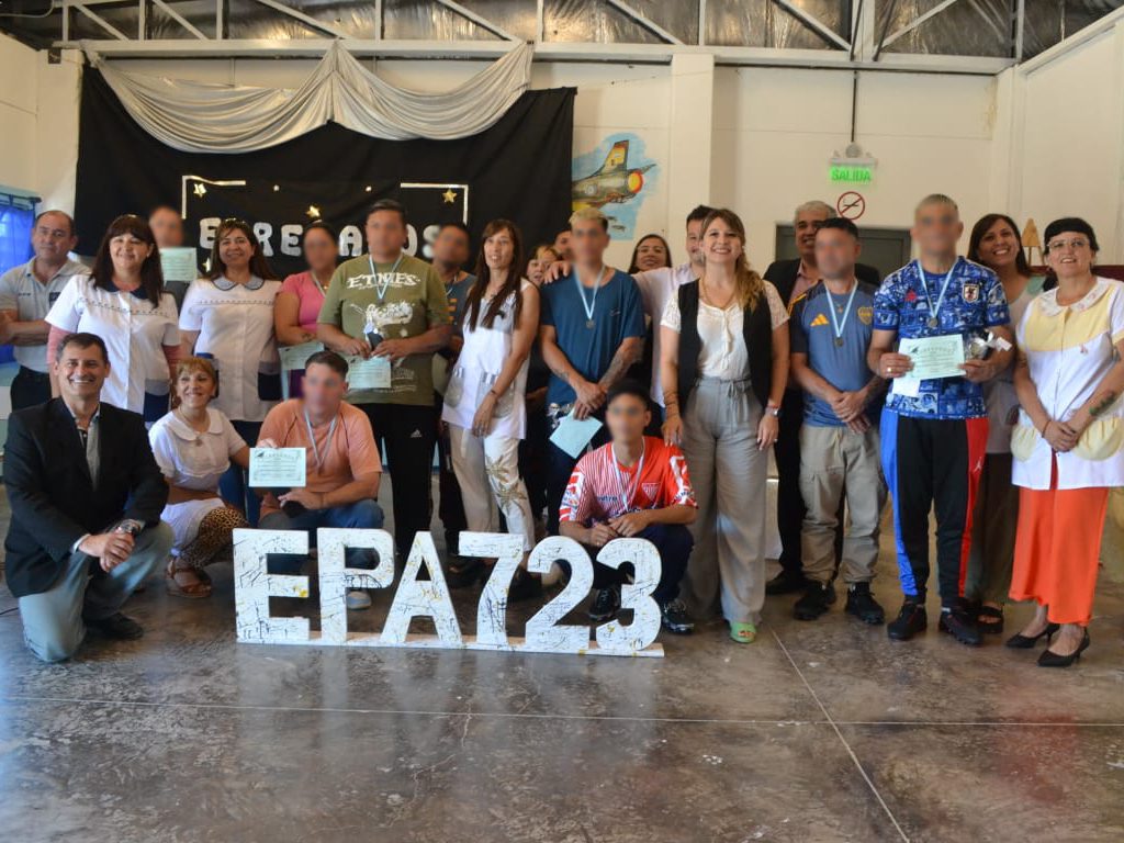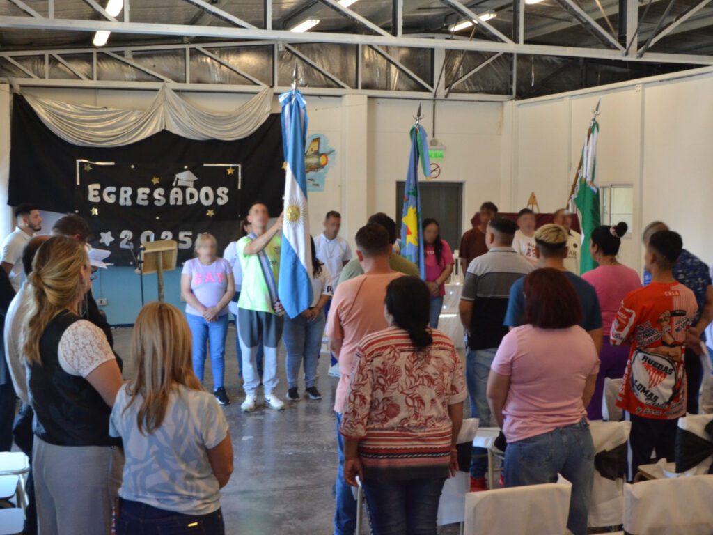 Merlo, 09/12/25.- Días atrás, se realizó el Acto de Egreso de los estudiantes en contexto de encierro que finalizaron el nivel primario de la EPA N° 723, con sede en la Unidad 60, en una ceremonia con la presencia de familiares de los graduados, el cuerpo docente de la institución educativa y funcionarios penitenciarios.