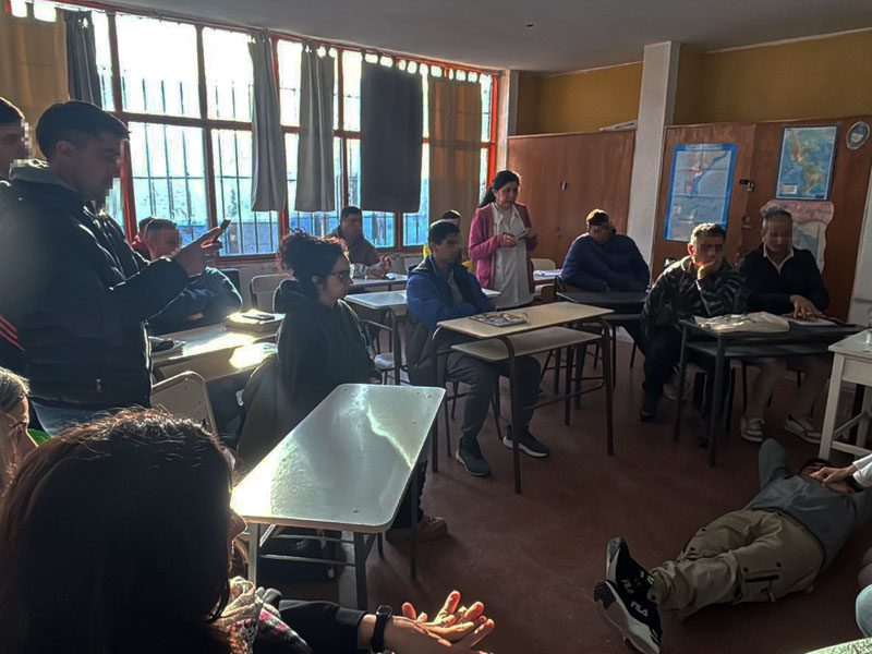 Junín, 04/09/25.- El aula del Nivel Primario de la Unidad 16 Junín fue escenario de una charla sobre prevención de enfermedades y RCP destinada a las personas privadas de libertad que participan en los diferentes niveles educativos que se dictan en la institución.