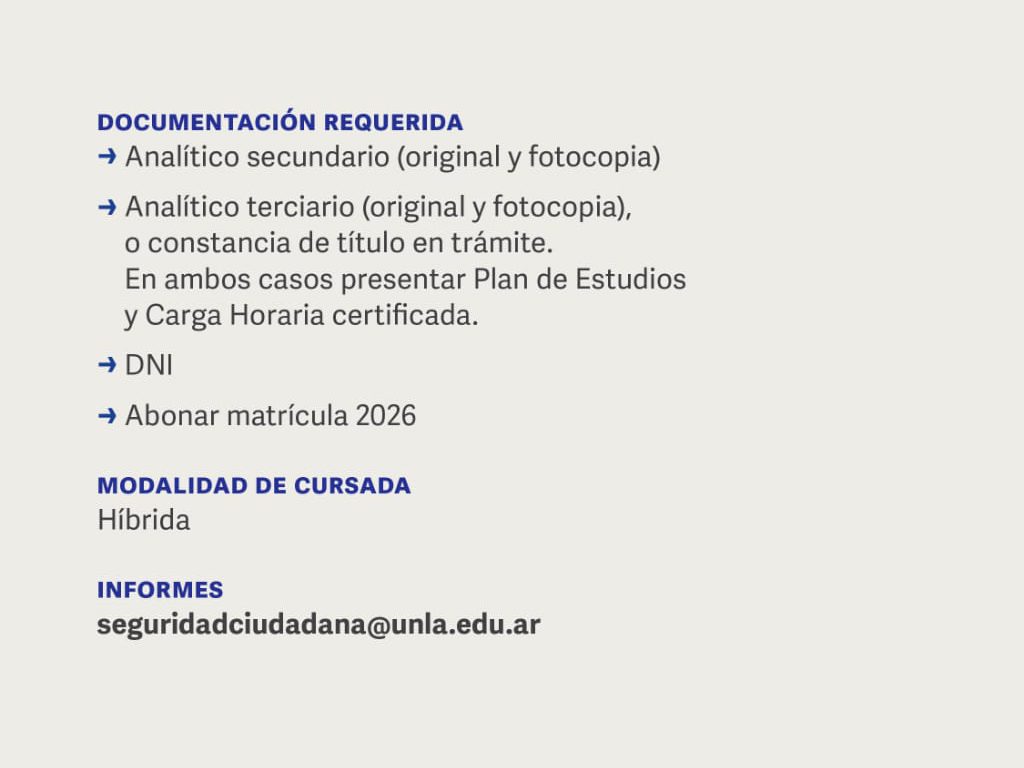 Para más información dirigirse a seguridadciudadana@unla.edu.ar.