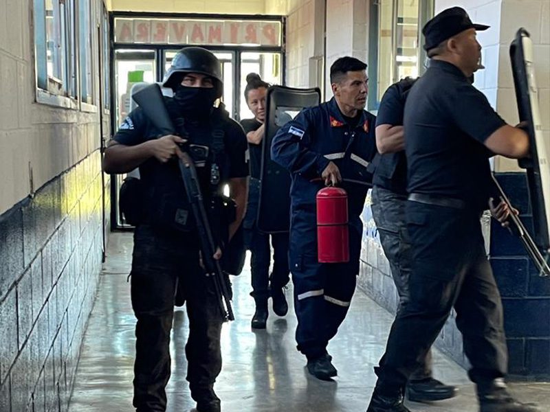 La actividad contó con la presencia del jefe del Complejo Penitenciario San Martín, Miguel Di Napoli, y del secretario de Coordinación, Mariano Moresco. Asimismo, supervisaron el desarrollo del simulacro el director de Unidad, Martín Ceballos, el subdirector de Régimen, Mauricio Pintos, el subdirector de Seguridad, Carlos Durán, el subdirector de Administración, Luis Beneditto, el subjefe de Tratamiento, Lucas Ramírez, el subjefe de Vigilancia, Darío Figueroa, el jefe de la Guardia de Seguridad Exterior, Esteban Miranda, el jefe del Grupo de Intervención ante Emergencias, Lucas Carabajal, la coordinadora de Educación y Cultura, Noelia Andradez, y personal de distintas secciones del establecimiento.