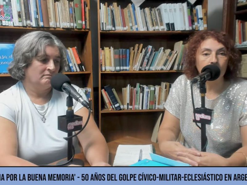 Daniela Gerea y Silvana Renna, dos de las talleristas que están a cargo del programa “Pabellones Literarios para la Libertad” fueron las representantes de los internos en la muestra que incluyó distintas propuestas en el marco de la vigilia por el 24 de marzo a 50 años del Golpe de Estado.
