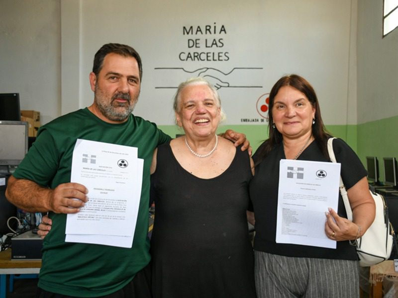 La Plata, 05/12/25.- Más de 40 computadoras reparadas por personas privadas de libertad de una cárcel de La Plata fueron entregadas este viernes a escuelas de Entre Ríos, de la capital bonaerense y de Florencio Varela, en una iniciativa que llevó adelante la Asociación Civil María de las Cárceles.